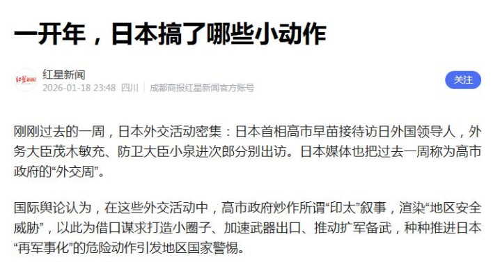 京报网 2026-01-18 日本开年密集外交,搞了哪些小动作